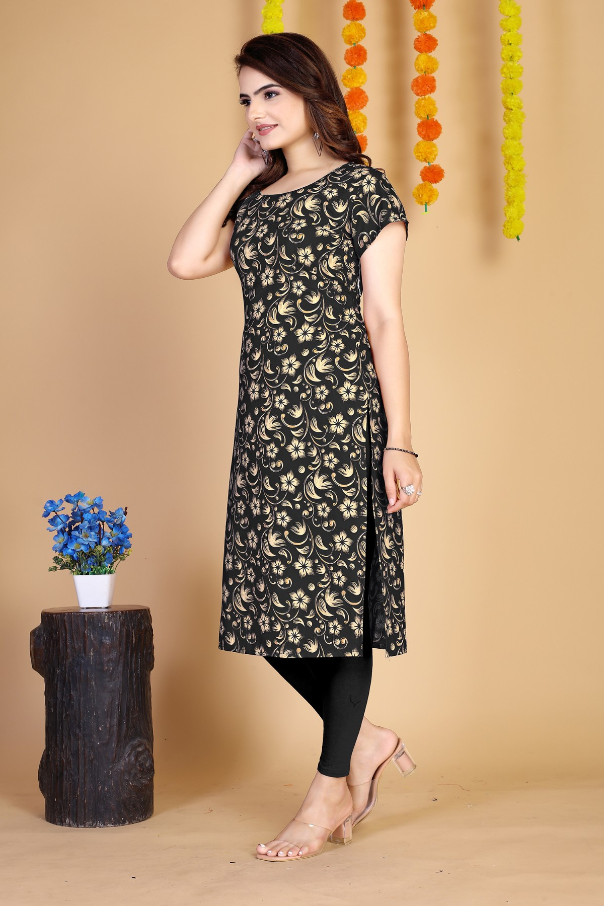 Elevate your fashion game with Reeta Fashion's Black Crepe Digital Print Kurti. Crafted from soft crepe fabric, this kurti showcases a sleek black base with striking digital prints. Its modern design and comfortable fit make it perfect for both casual and semi-formal events, adding a touch of sophistication to any outfit.