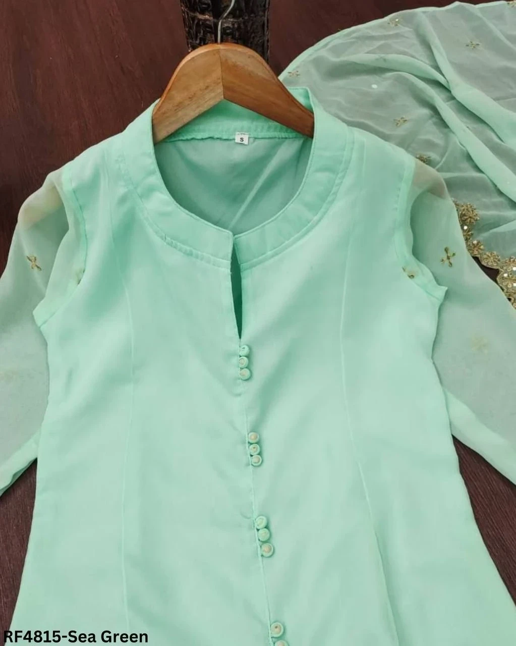 Breezy & Beautiful: Faux Georgette Kurti with Pant & Dupatta for a Stylish Statement