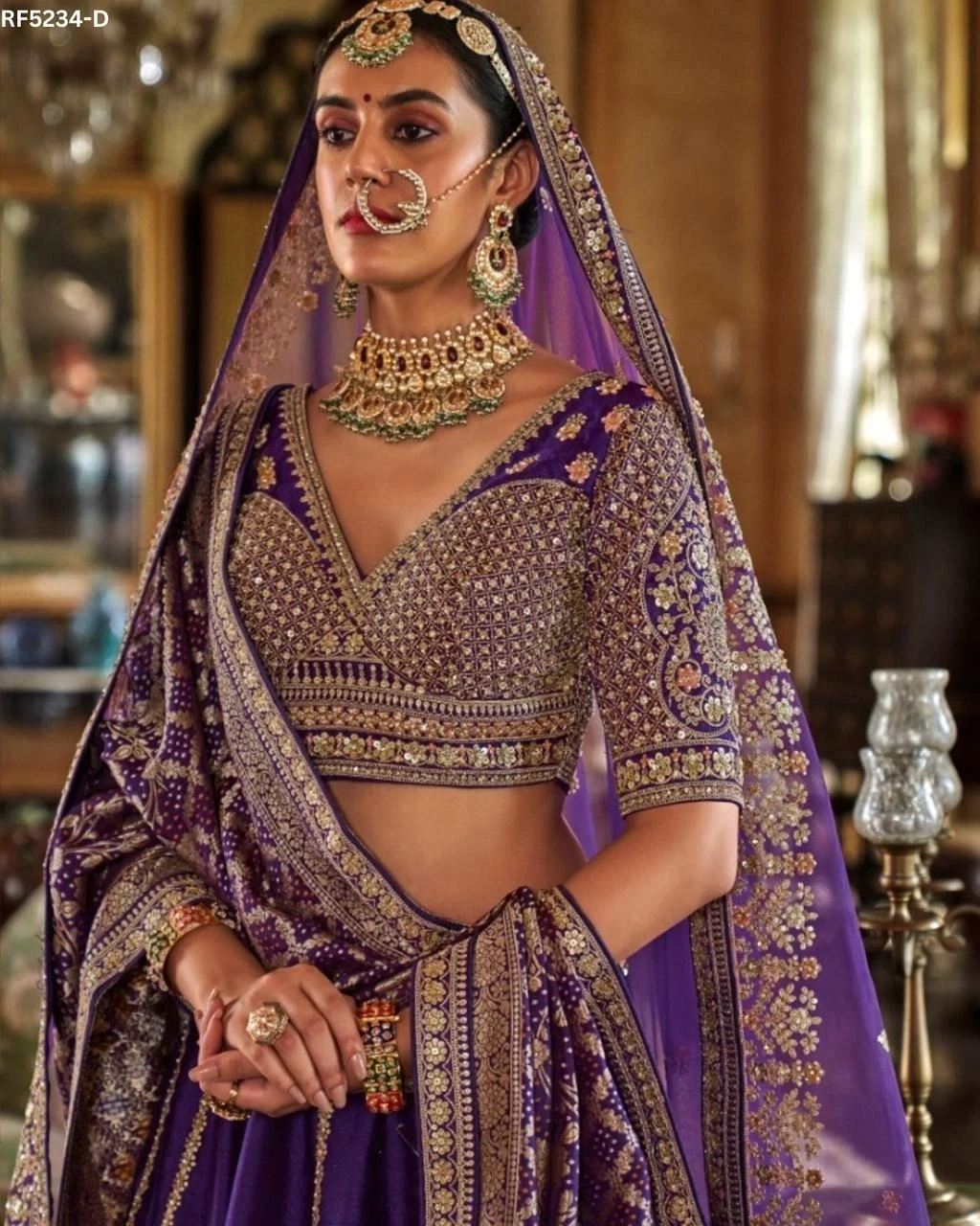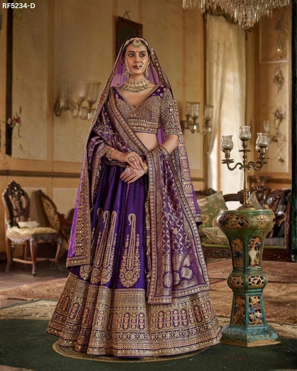 Designer Raw Silk Embroidered Lehen...