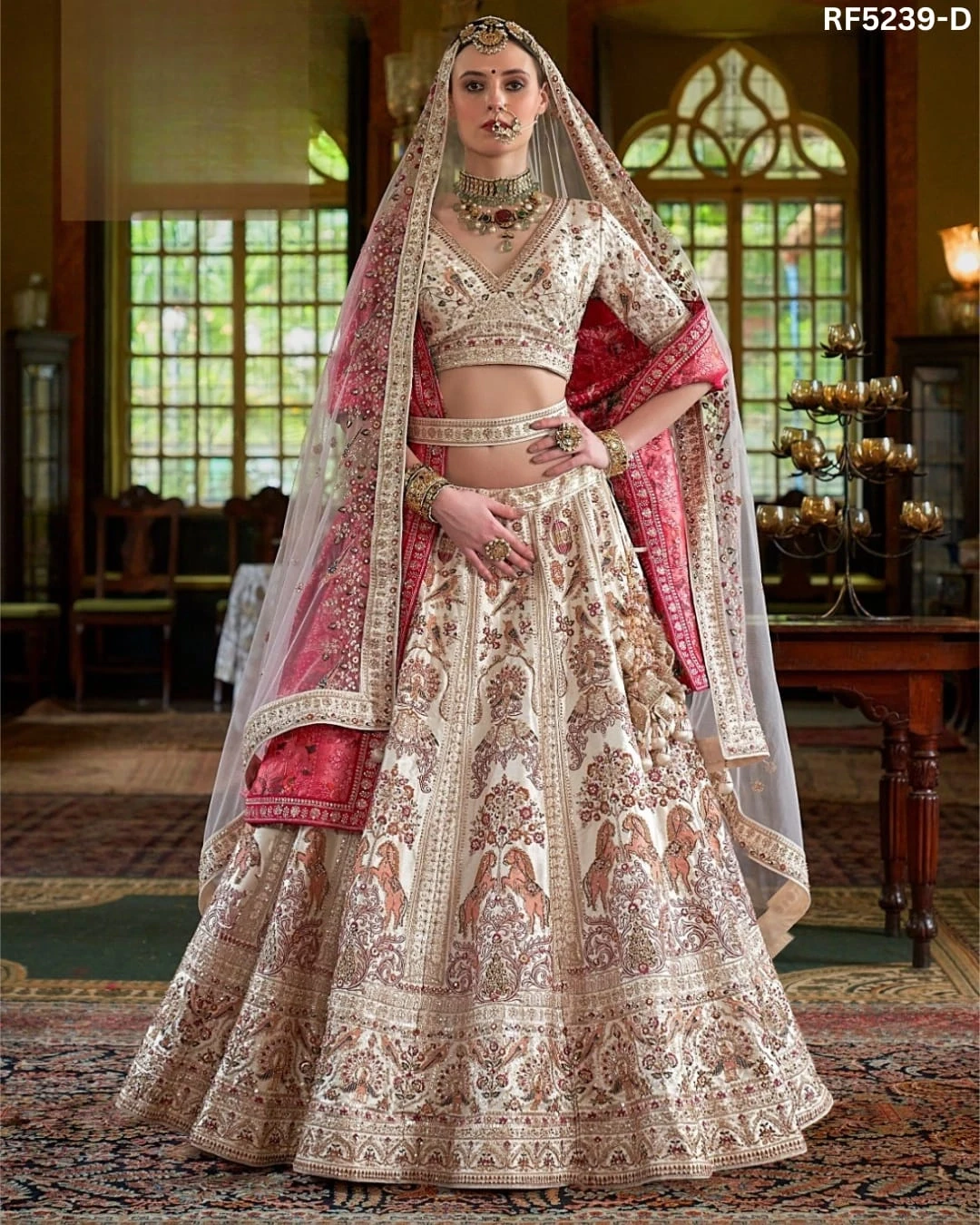 Designer Raw Silk Embroidered Lehen...