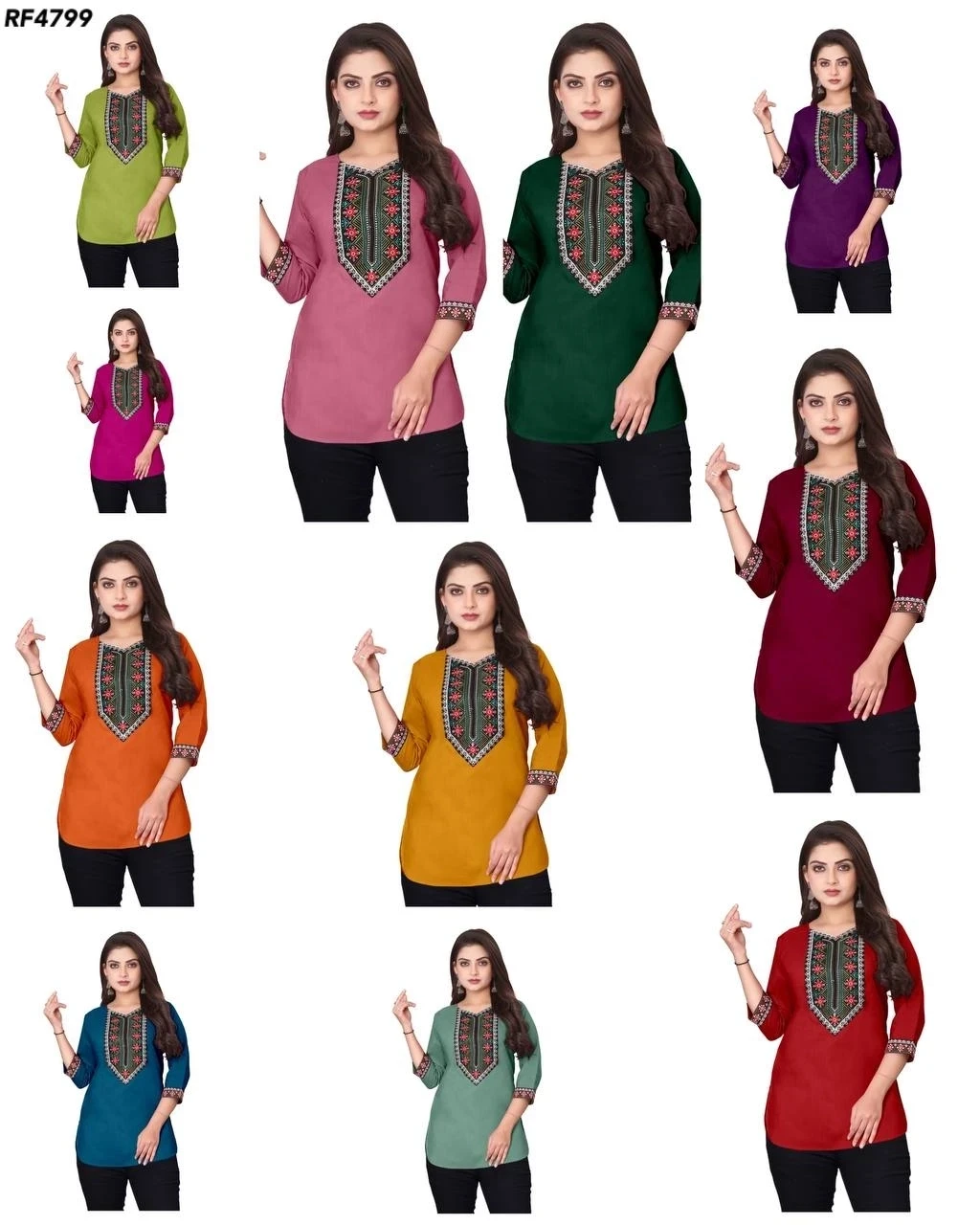 Effortless Elegance: Magic Cotton Short Kurti with Stunning Embroidery.