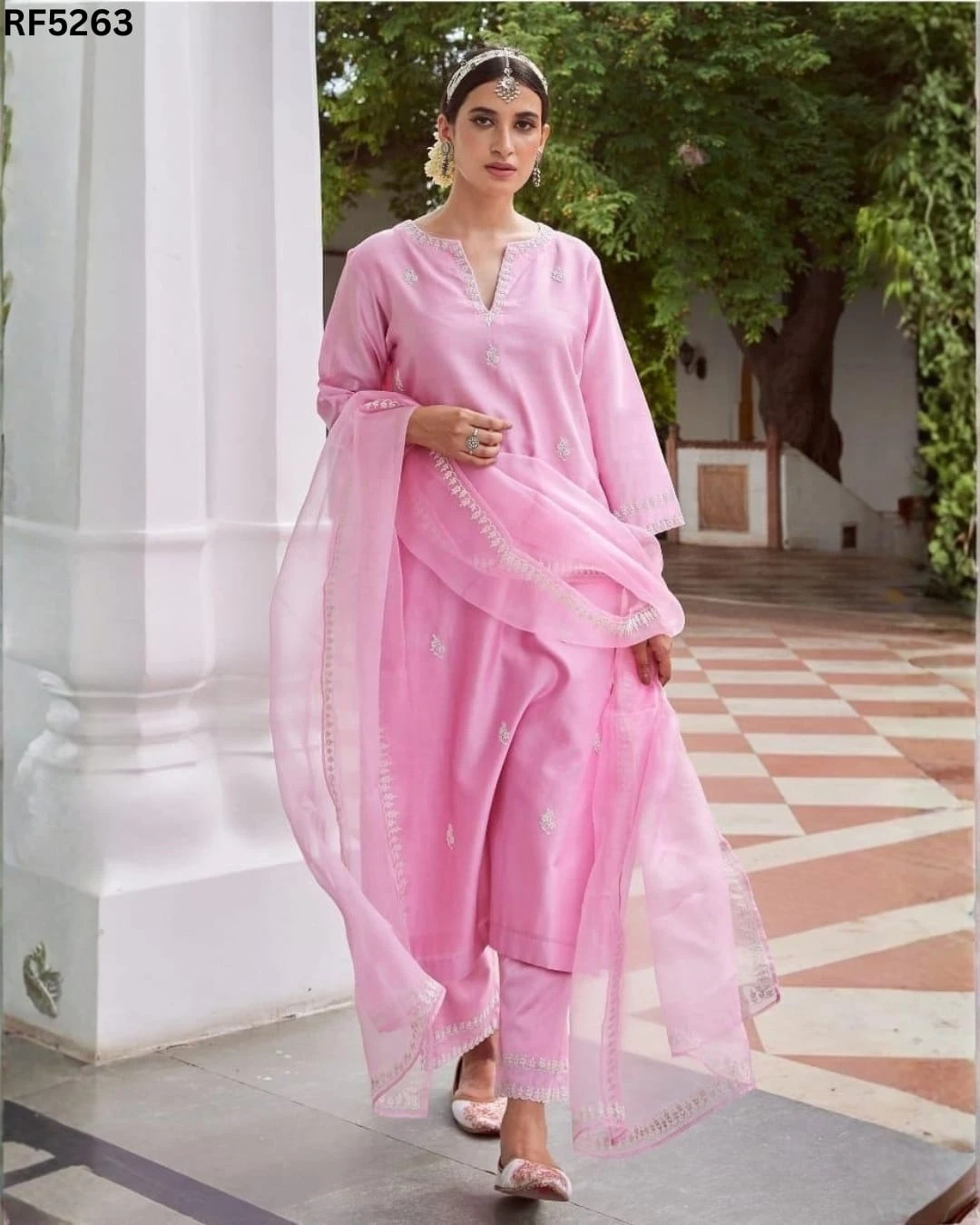 Elegant Ethnic Charm – 3-Piece Chanderi Kurti Ensemble.
