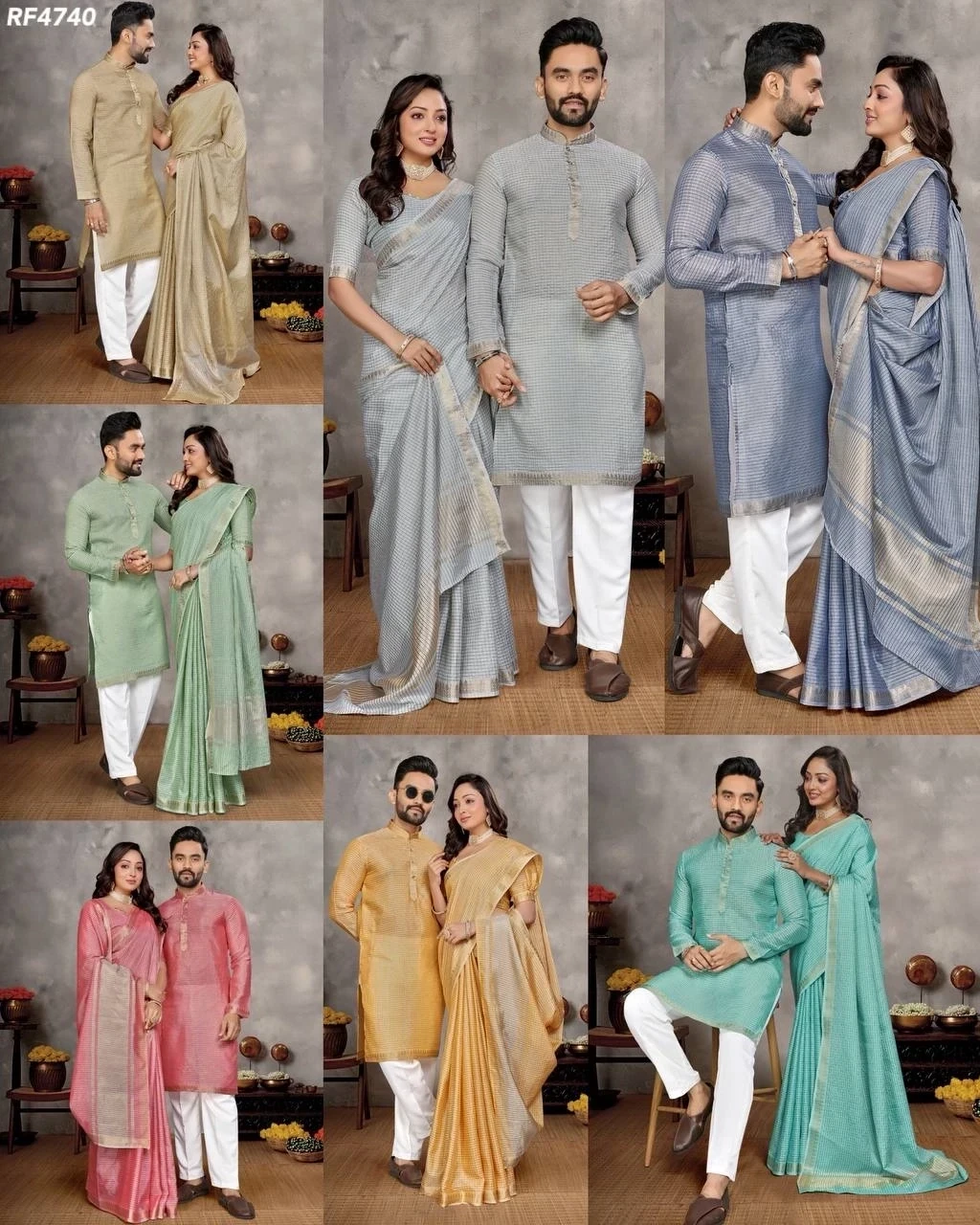 Elegant Couple Set: Men's Kurta & Women's Saree – A Perfect Match!