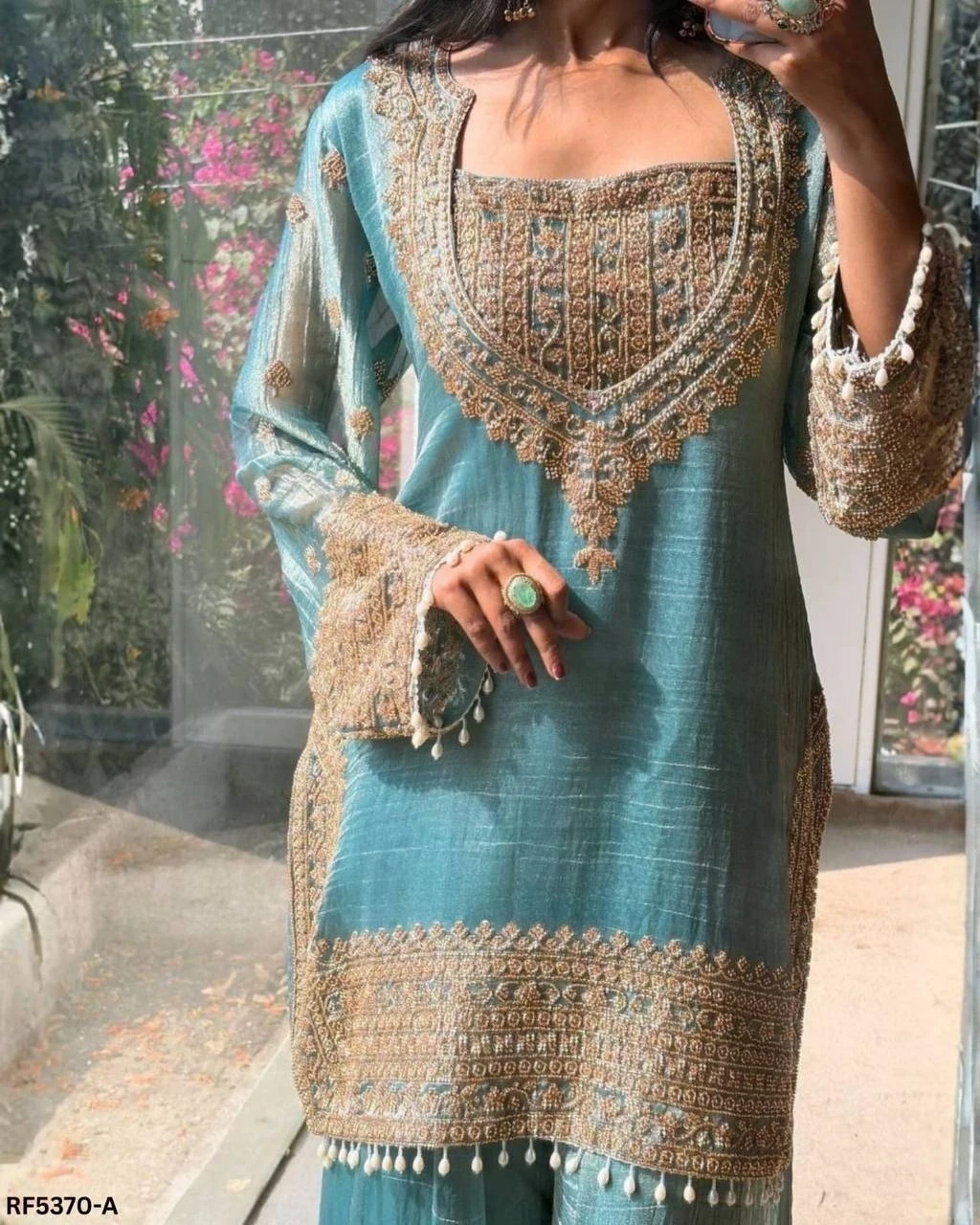 Timeless Beauty: Stunning Vichitra Silk Kurti with Dupatta.