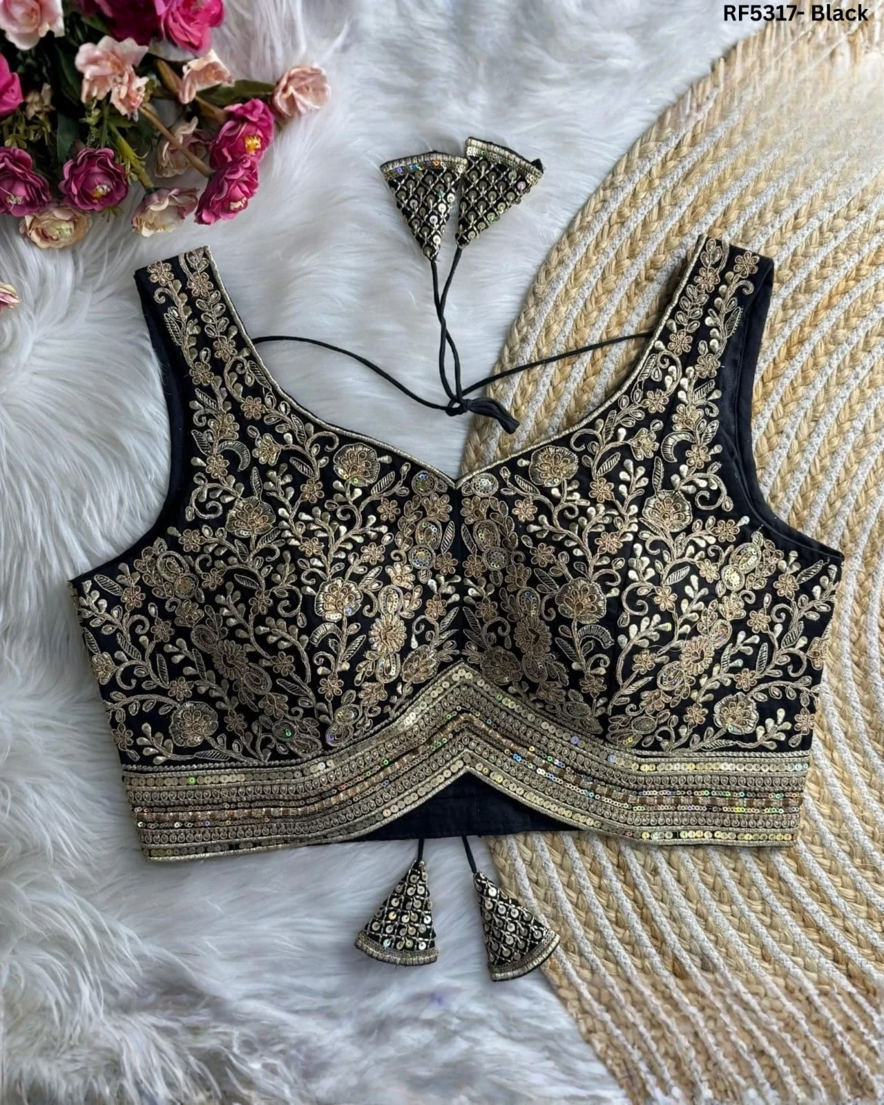 Glam Up Instantly: Pure Zimichoo Readymade Blouse with Stunning Sequence Embroidery.