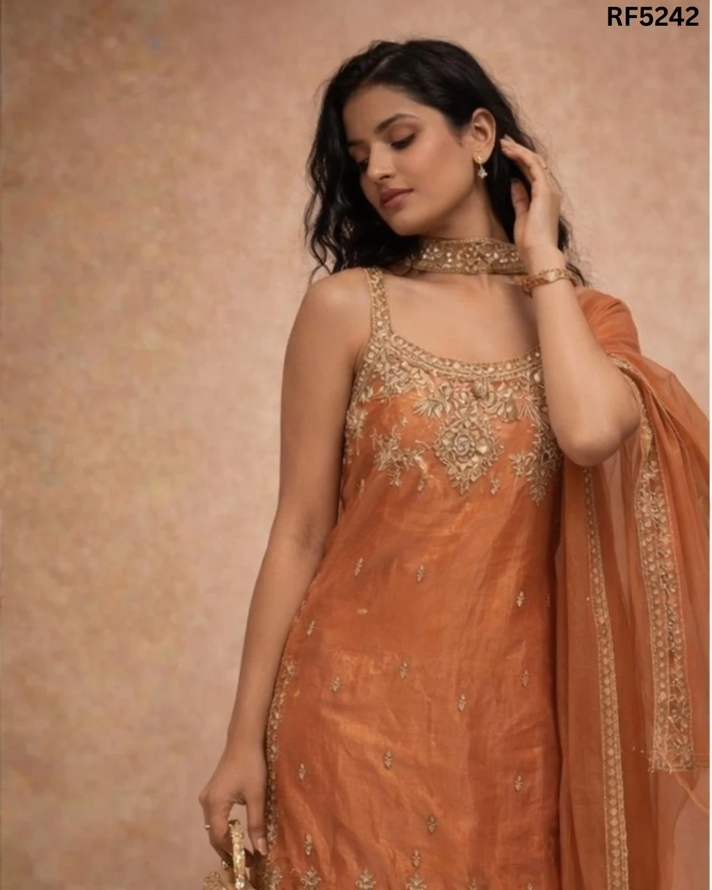 Elegant Roman Silk Kurti Set with Embroidery & Printed Chinon Dupatta!