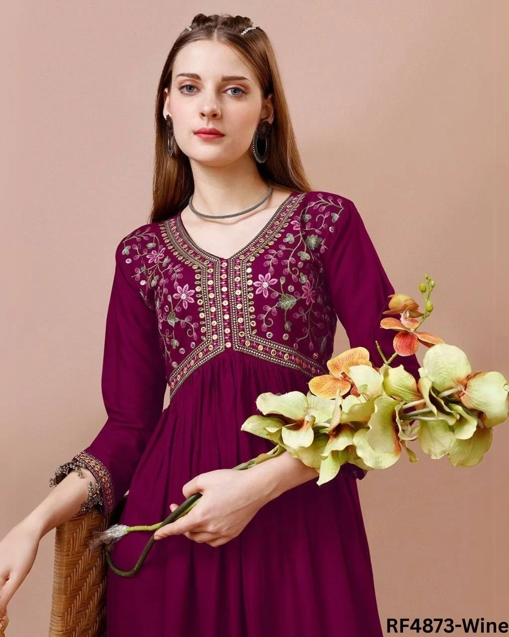 Feel the Beauty of Tradition: Rayon Kurtis with Stunning Embroidery Work.