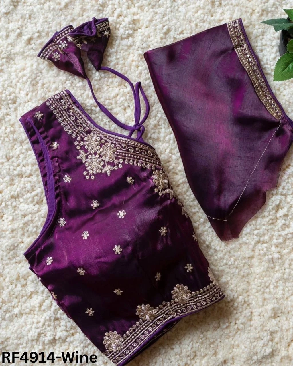 Glam Up Instantly: Pure Zimichoo Readymade Blouse with Stunning Sequence Embroidery.