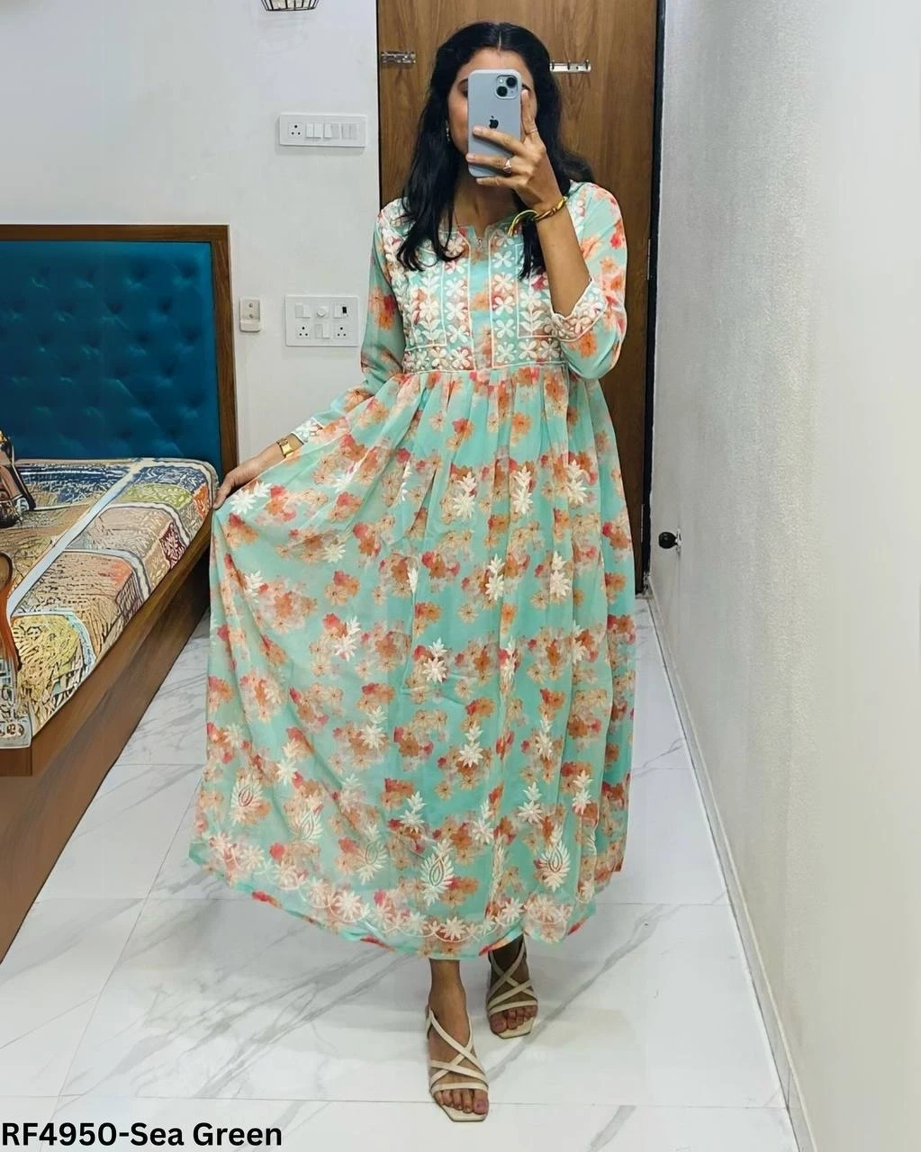 Grace in Georgette – Printed Gown with Embroidered Detail!