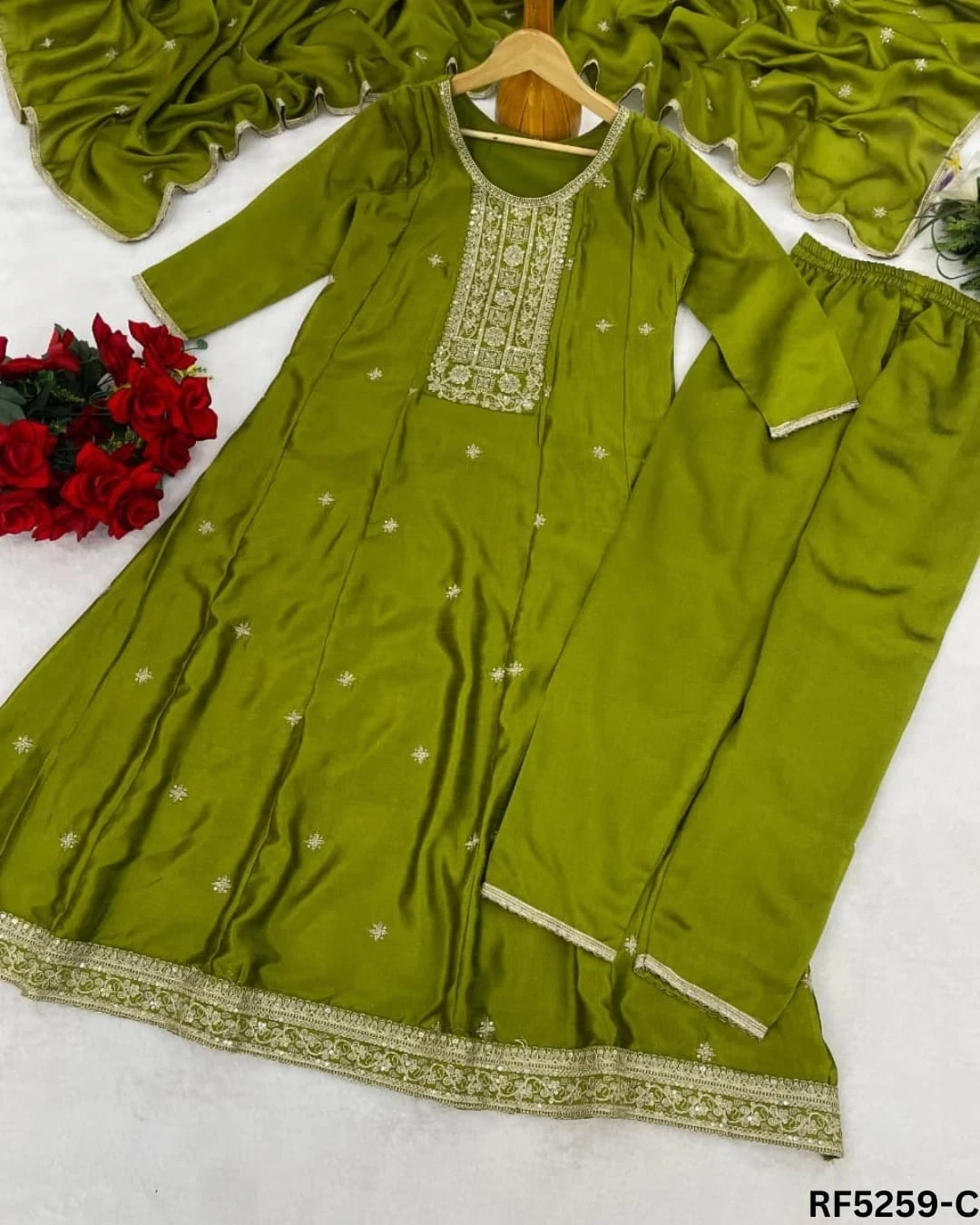 Pure Elegance – Solid Chanderi Silk Suit with Printed Dupatta!