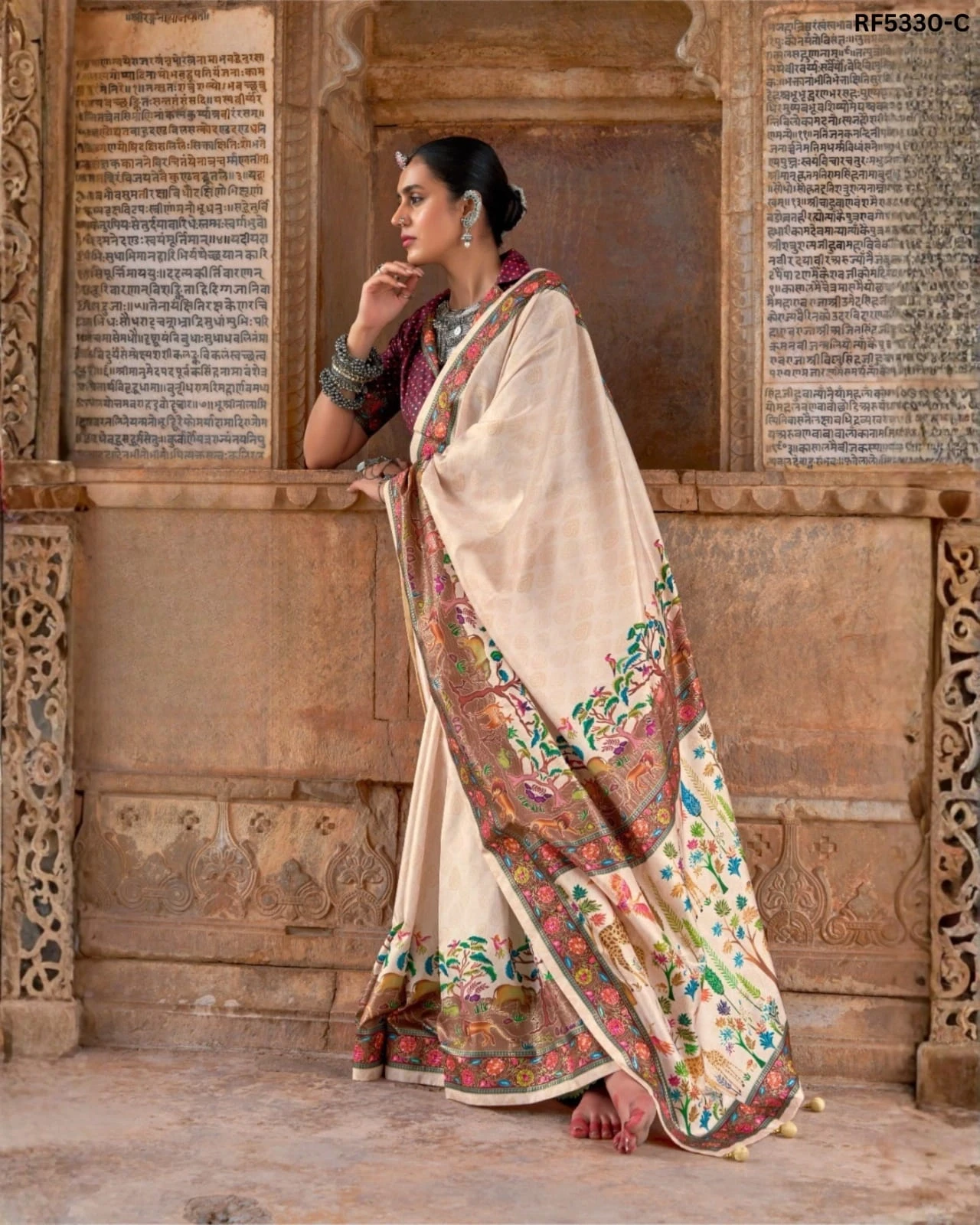 Elegant PV Silk Saree with Floral Border & Pallu Weaving!