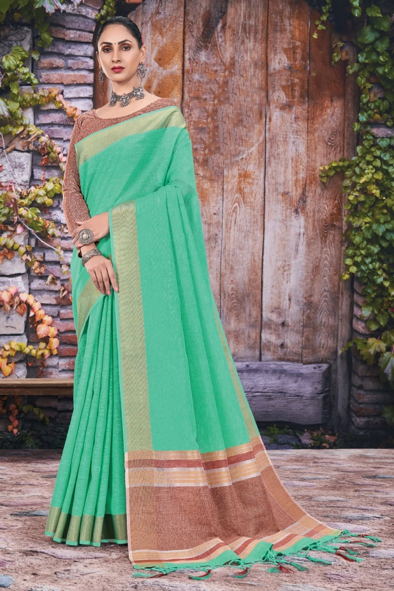 Reeta Fashion Presents Linen Woven Work Saree, This saree is comfortable to wear and care. Paired with unstitched Blouse