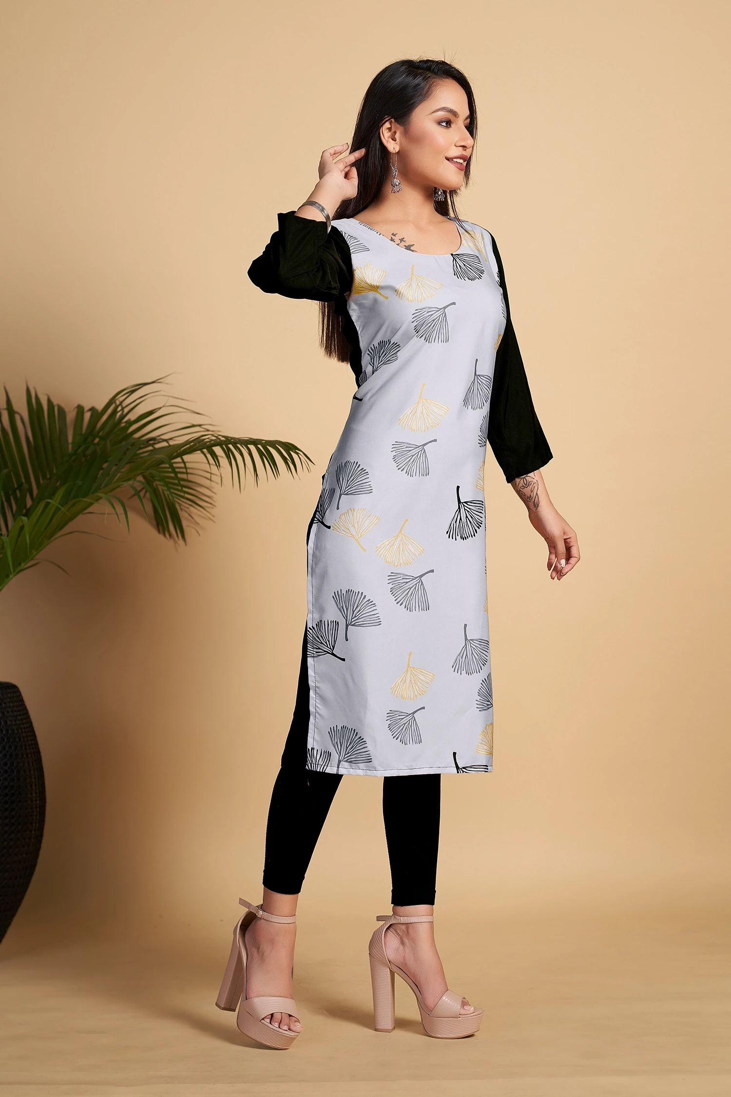 Discover elegance with Reeta Fashion's Stylish grey Crepe Kurti, featuring a vibrant digital abstract print. Perfect for any occasion, this lightweight, breathable kurti offers comfort and style, making it a must-have for your wardrobe. Elevate your fashion game now!