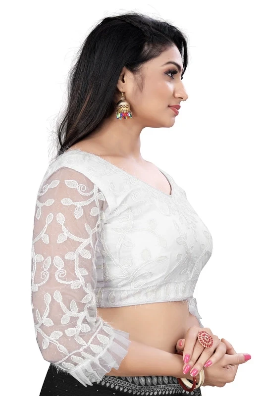 Reeta Fashion White Nylon Net Full Cording Embroidery Work Readymade Blouse