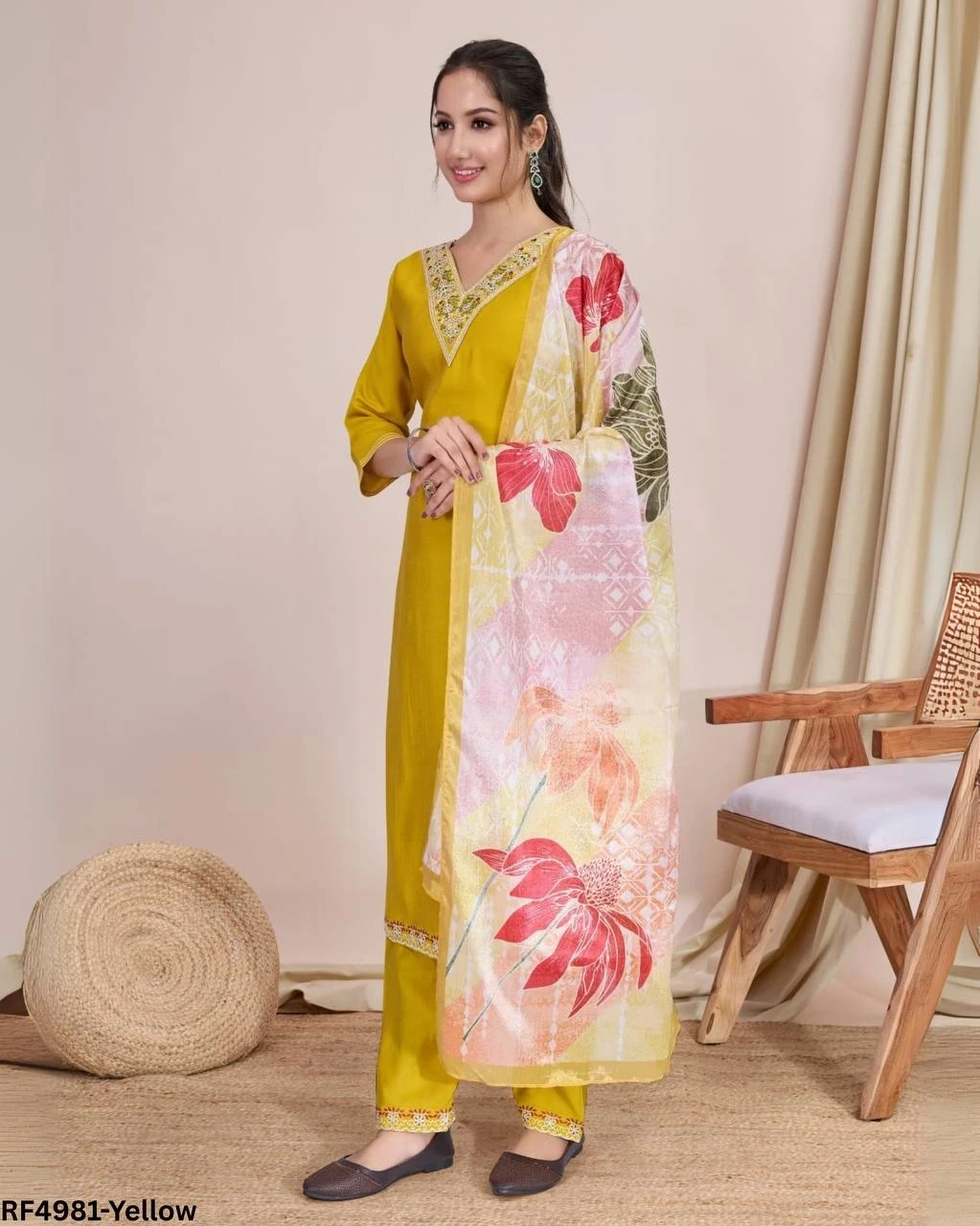 Royal Elegance Chanderi Kurti Set With Digital Printed Dupatta!