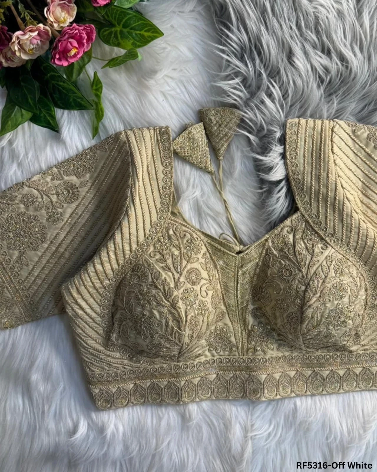 Designer Vichitra Silk Readymade Blouse with Lotus Embroidery & Sequins!