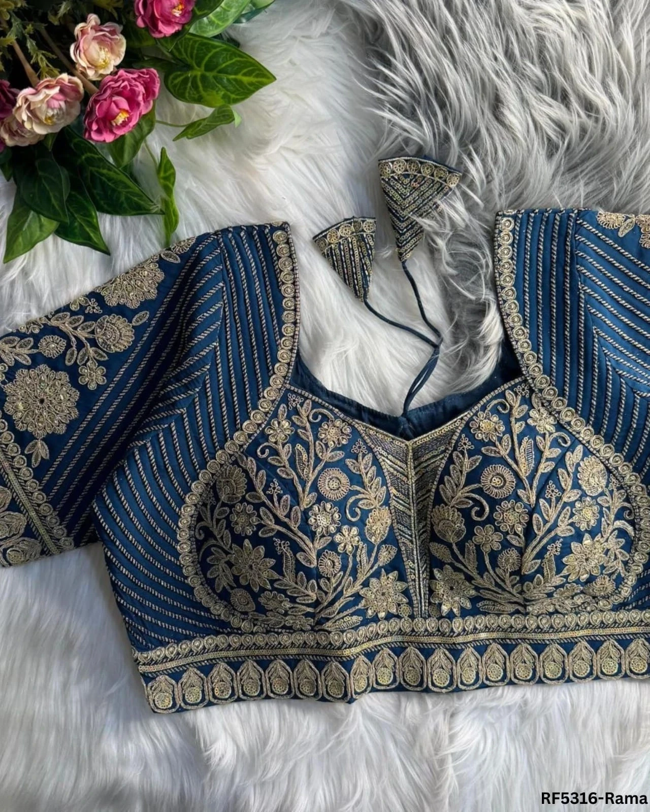 Designer Vichitra Silk Readymade Blouse with Lotus Embroidery & Sequins!