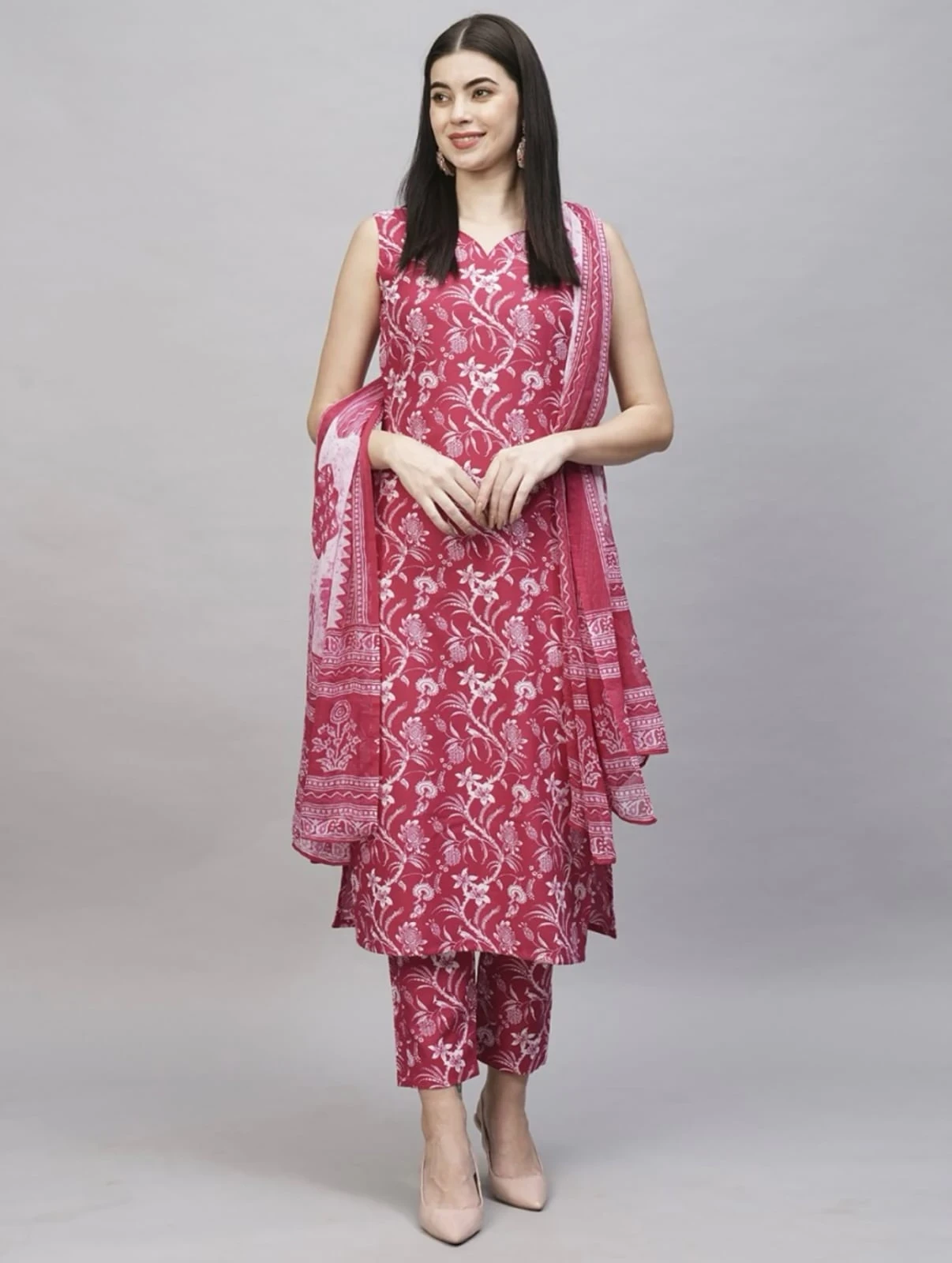 Trendy Cotton Kurti Set With Beautiful Printed Work
