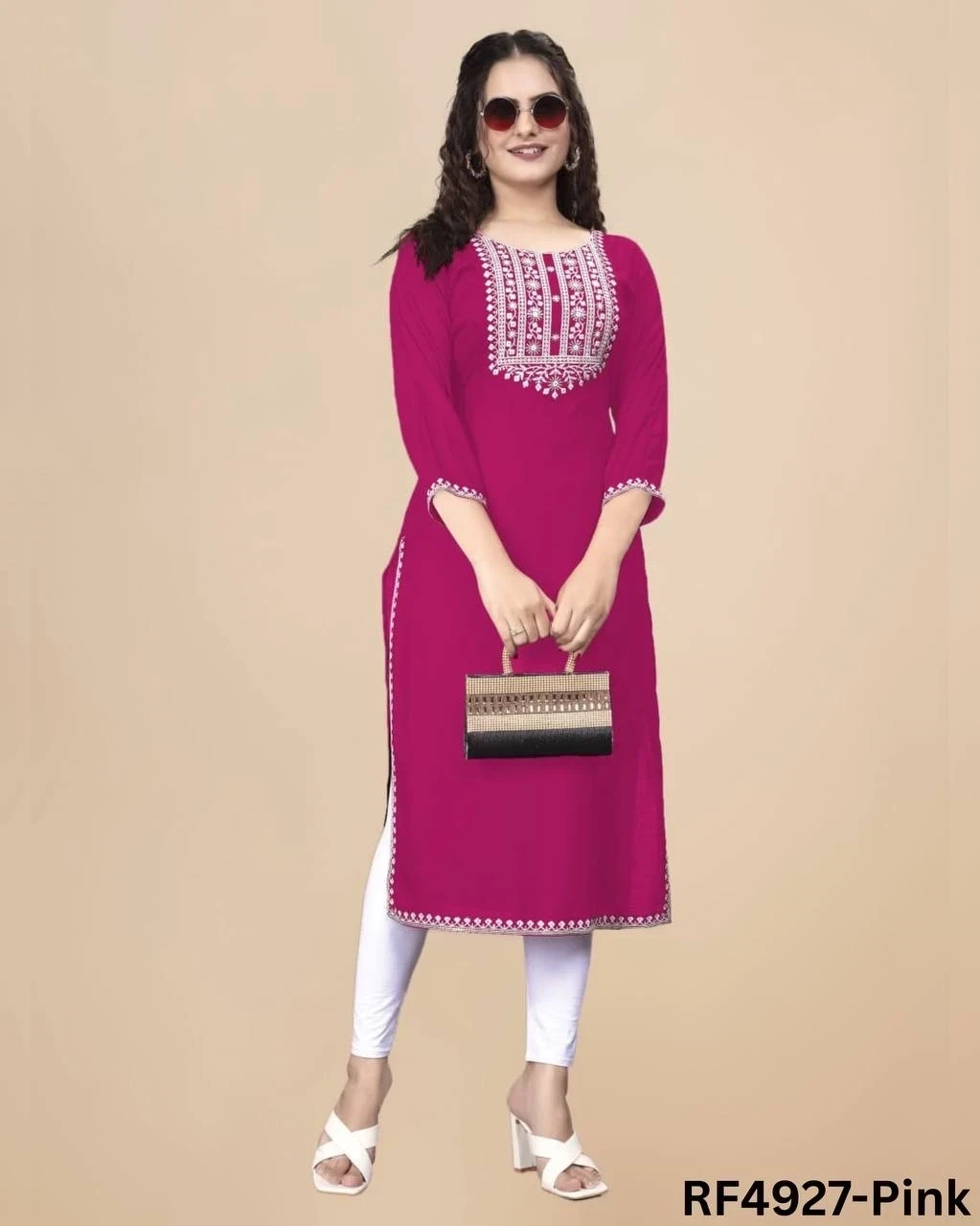 Trendy & Timeless: Embroidered Rayon Kurti for Effortless Everyday Style.