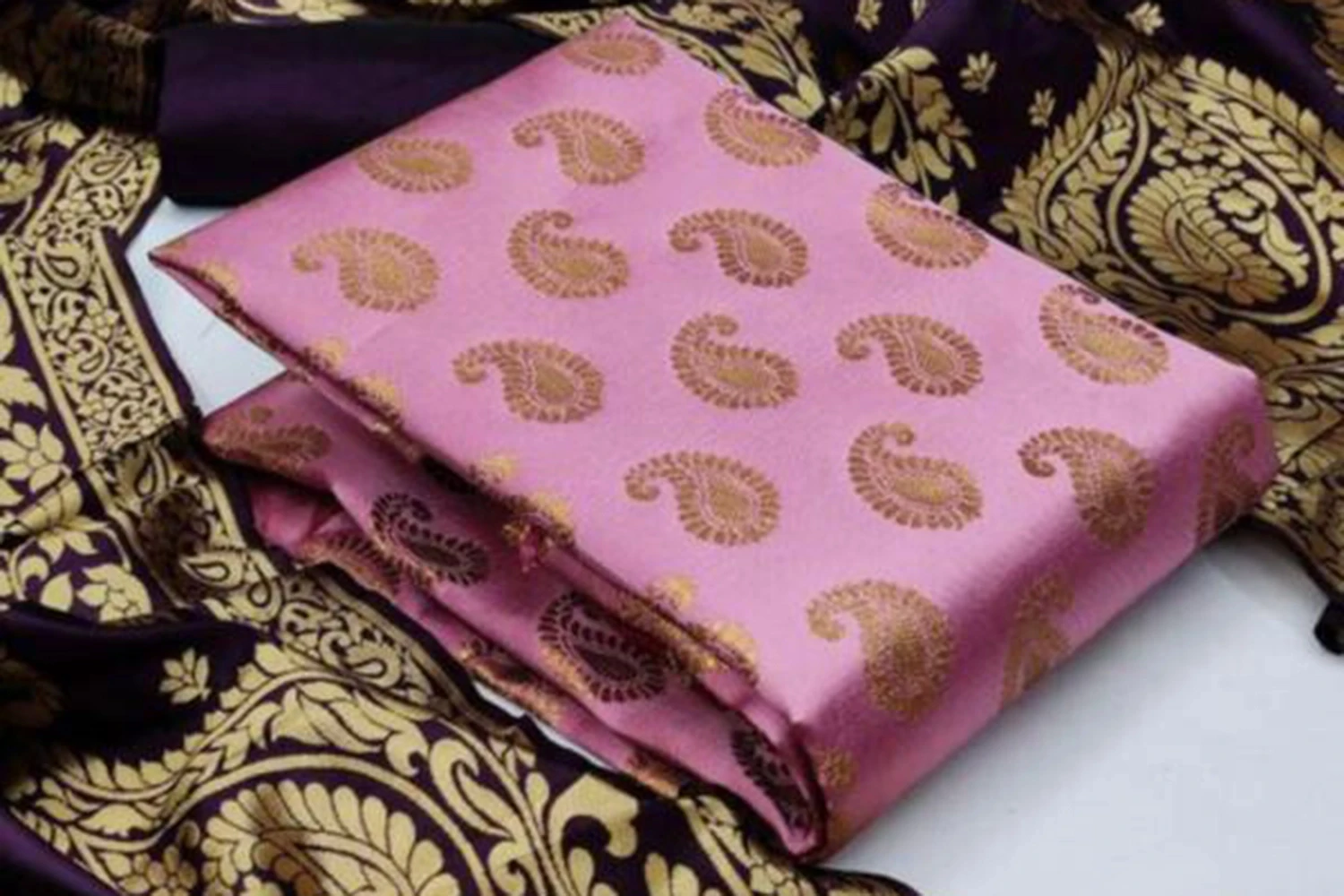 New Design Baby Pink Banarasi Jacard Silk Dress Material