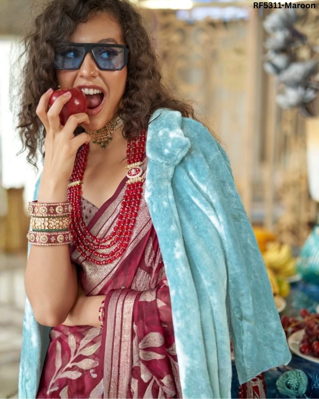 Luxury in Every Drape – Elegant P.V Silk Printed Saree!