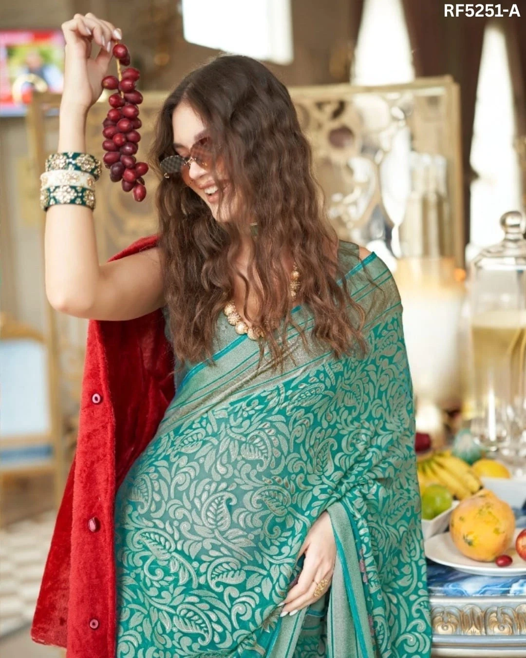 Luxury in Every Drape – Elegant P.V Silk Printed Saree!