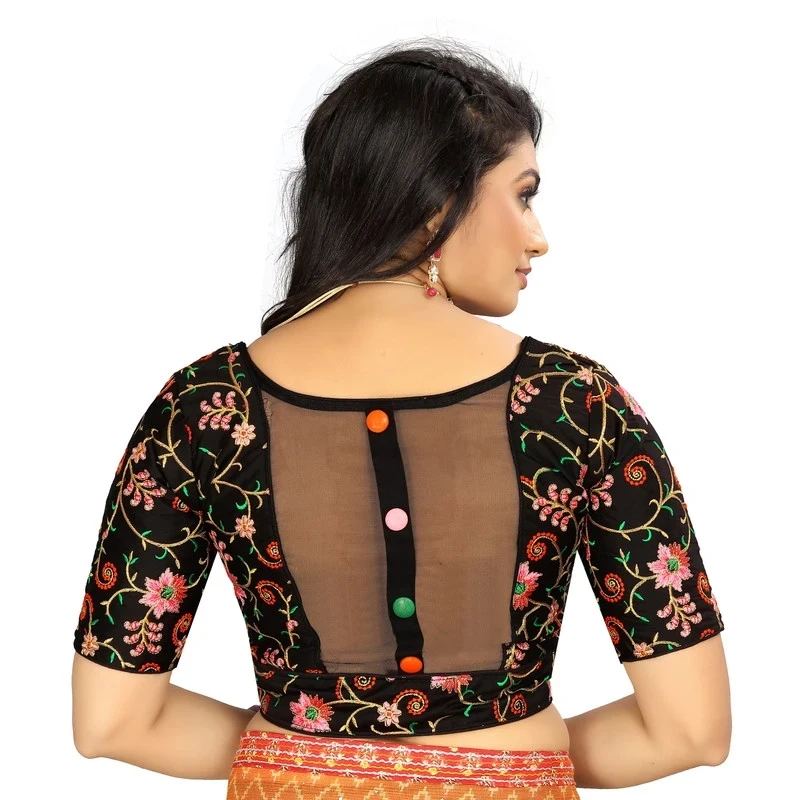 Reeta Fashion Black Heavy Malay Satin Full Embriodery Work Readymade Blouse