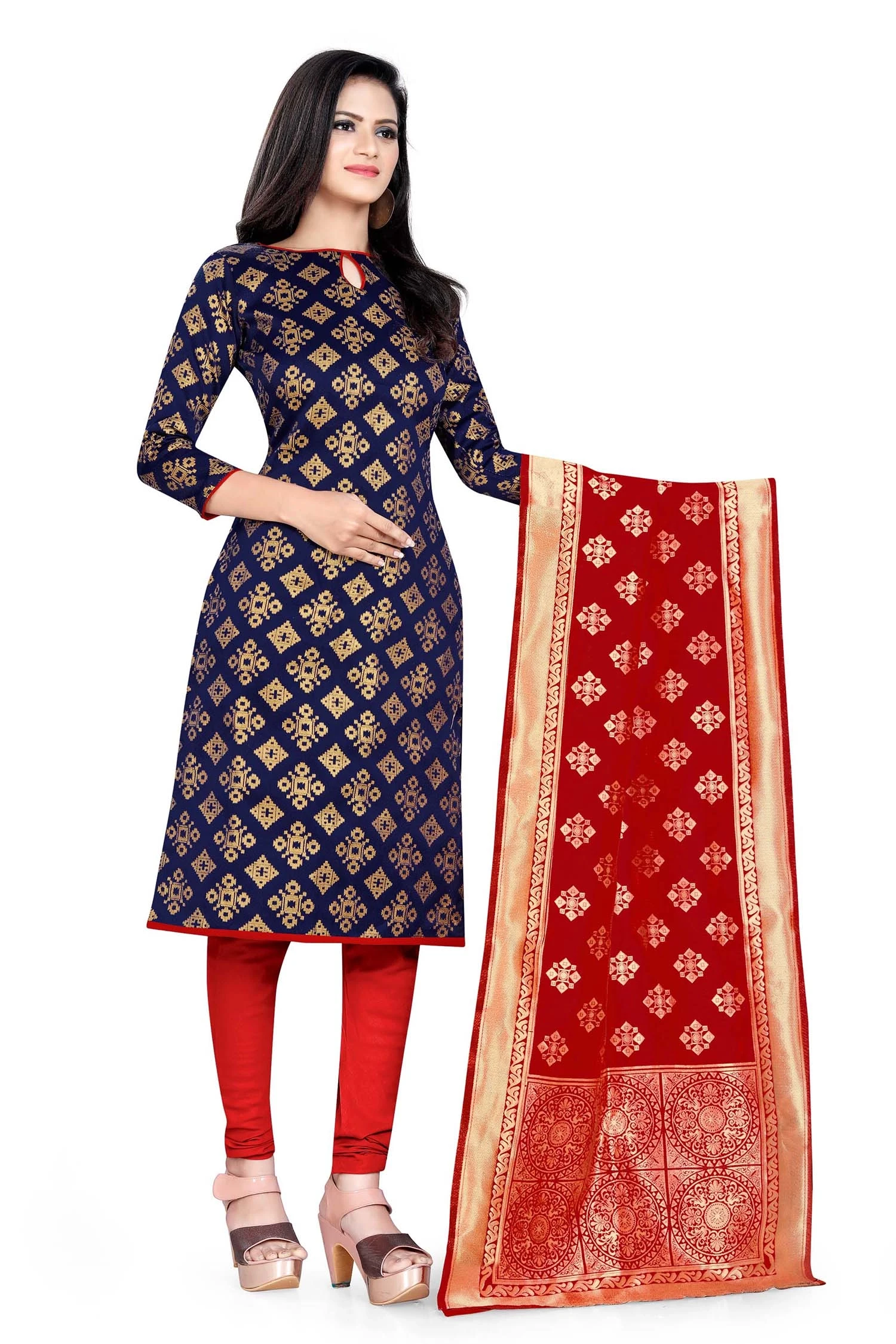 Stylish Red Banarasi Jacard Silk...
