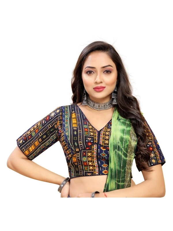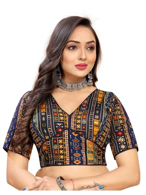 Reeta Fashion Navy Blue Cotton Softy Silk Foil Readymade Blouse