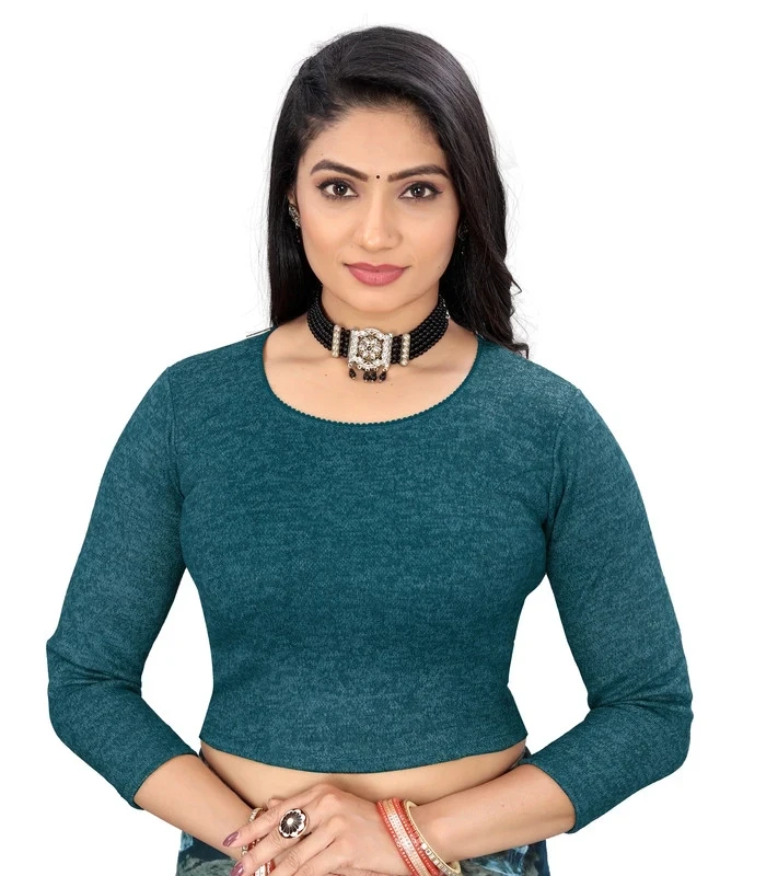 Reeta Fashion Petrol Blue Woolen Cotton Plain Readymade Blouse