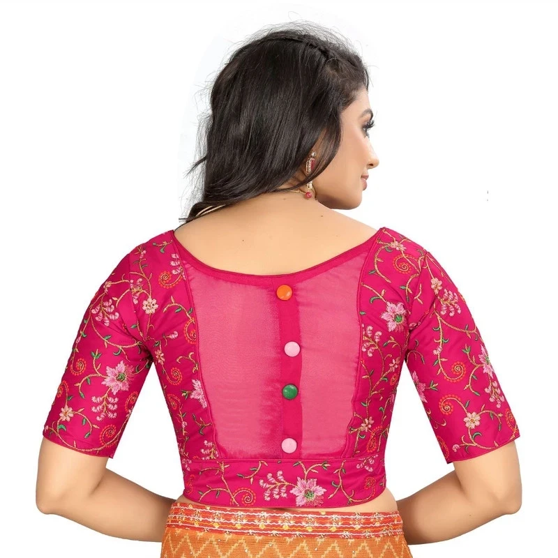 Reeta Fashion Pink Heavy Malay Satin Full Embriodery Work Readymade Blouse