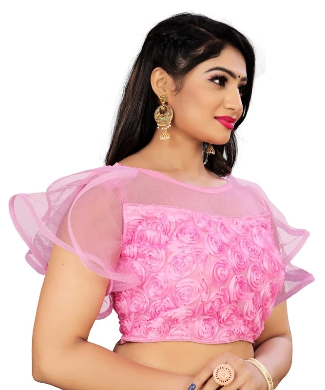 Reeta Fashion Pink Nylon Net Ribin Embriodery Work Readymade Blouse