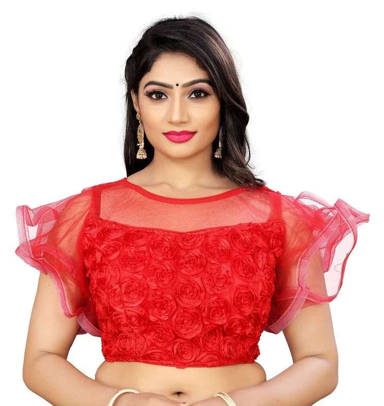 Reeta Fashion Red Nylon Net Ribin Embriodery Work Readymade Blouse