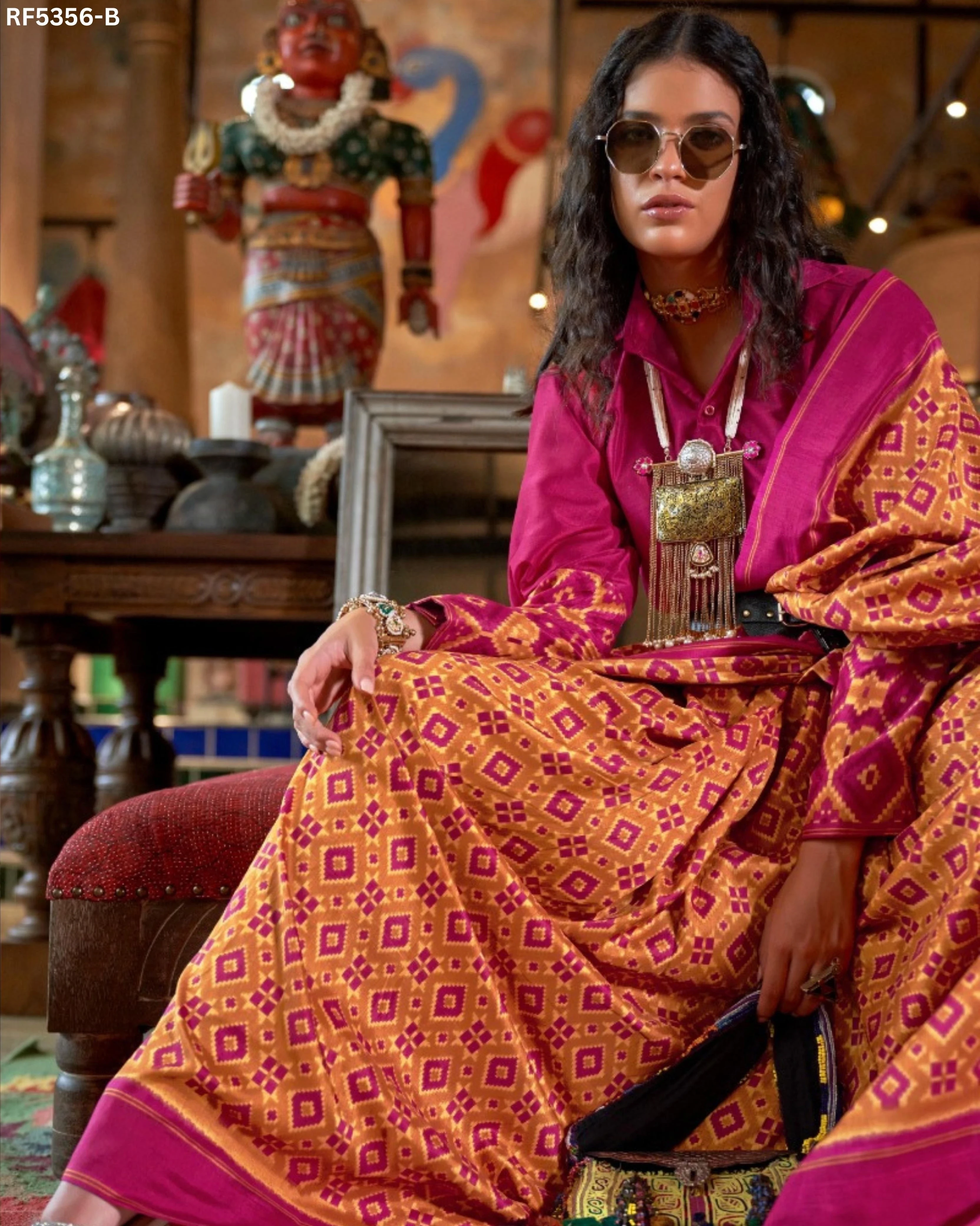Luxury in Every Drape – Elegant P.V Silk Printed Saree!